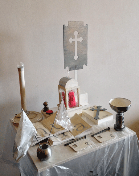 Ah / HwTL - Antihomophobic - Halfway Through Legalization refers to the heterosexist patriarchal matrix in structuring the Romanian society conditioned by cultural dogmatic contingent, formulating laws in absence of a cognitive and rational process. Although "sodomy", frequently invoked by Christian right can be strictly linked to privacy and private space, homosexuality however is linked to its existence in the public space, to coming-out, to take on and publicly accept homosexuality, to equality between the majority and minority. Apparently the reasoning for discriminating against sexual minorities and the arena in which it occurs and is experienced, refers to public perceptions and does not refer to private events, which when committed in public are punishable "unconditionally" as indecent exposure. Laws that prevent sexual minorities obtaining equal status, however, are drawn up in order to prevent the acknowledgement of their public and private existence in society. The hybrid between the Altar Table and the City Hall civil ceremony table reflects the specific connection between the religious and the political, distinctive for the Romanian ethos, criticizing the authorities for committed discriminations but also the discriminated, who anonymously without commitment craves for equal rights. |