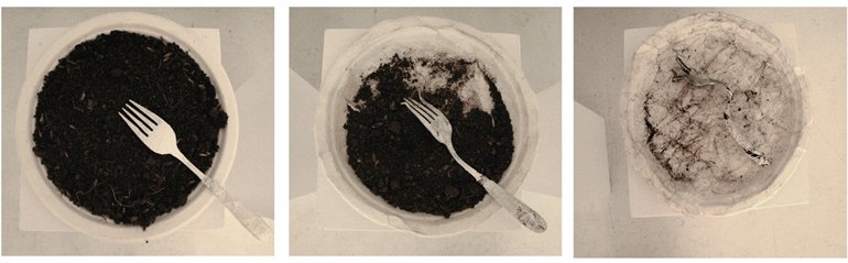 Three Plates, 2009, paper plates, earth, fork, dimensions variable